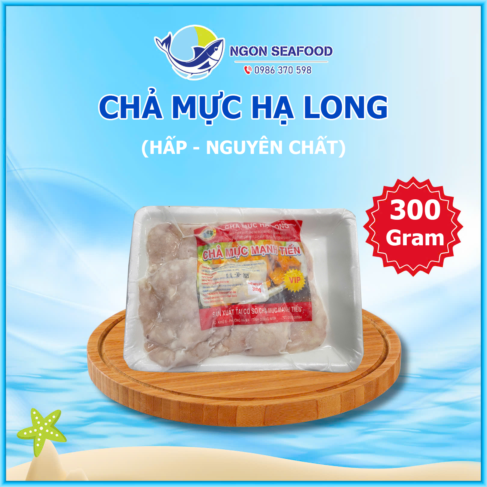 Chả Mực Giã Tay Hạ Long (Hấp) - Hút Chân Không - Khay 300gr 0