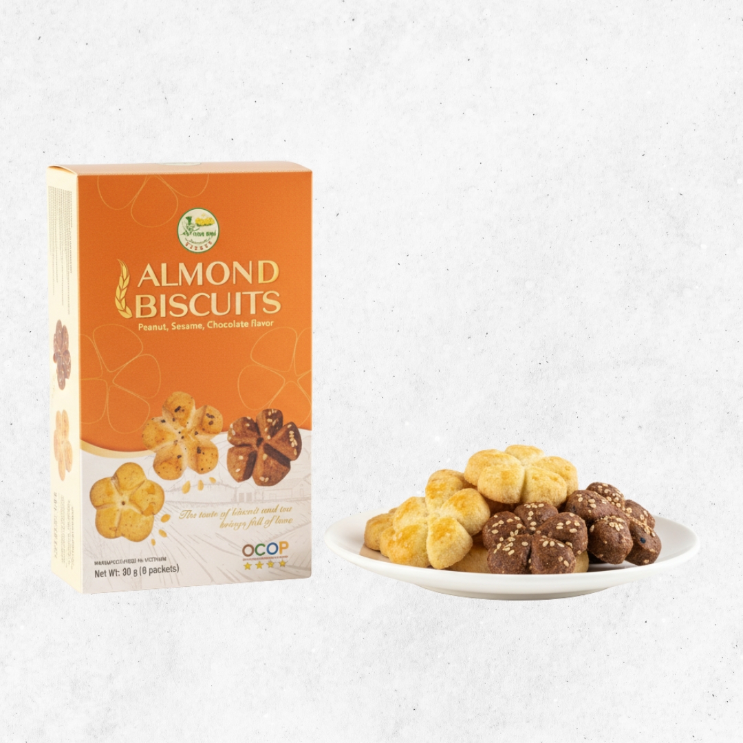 Bánh Hạnh Nhân Tiến Anh 80g – Đặc Sản Chợ Mới, Vị Mè Đậu Socola