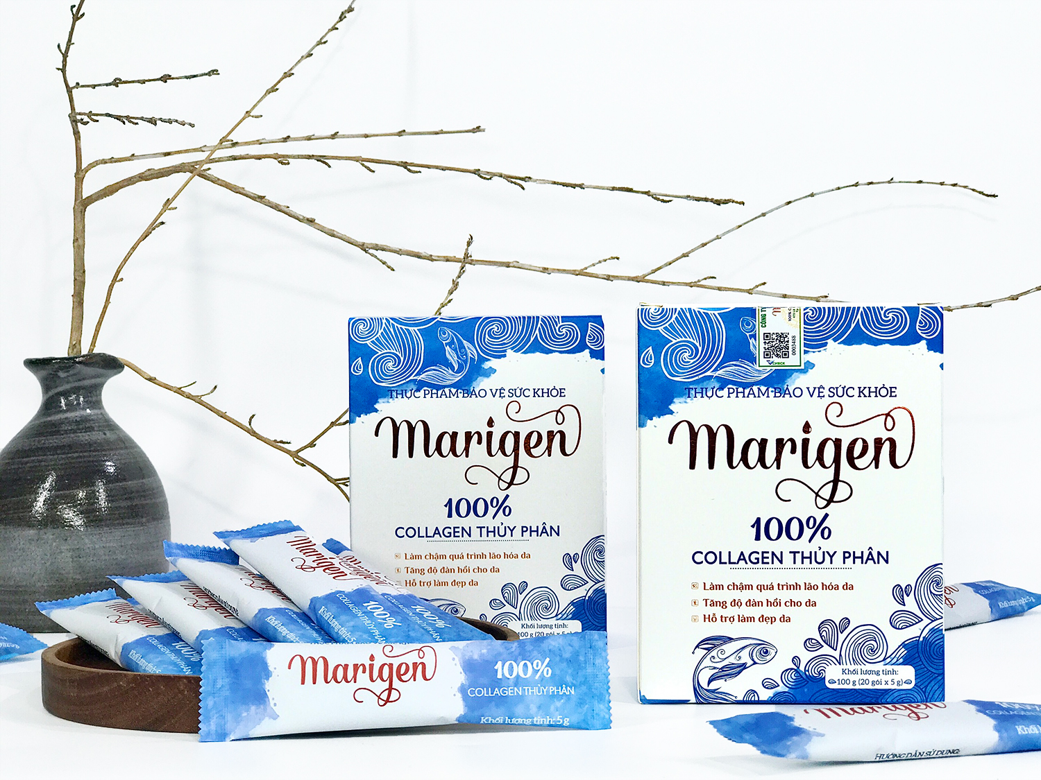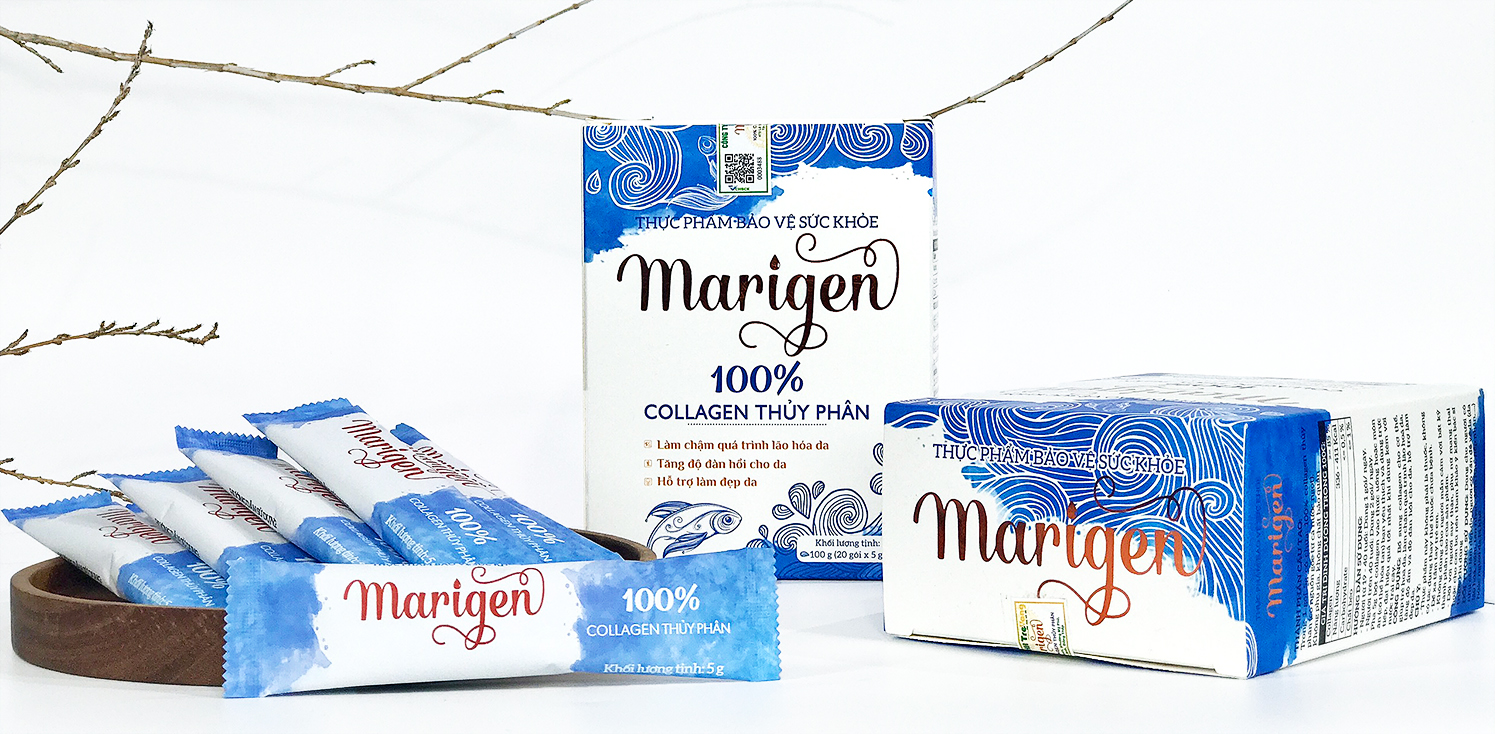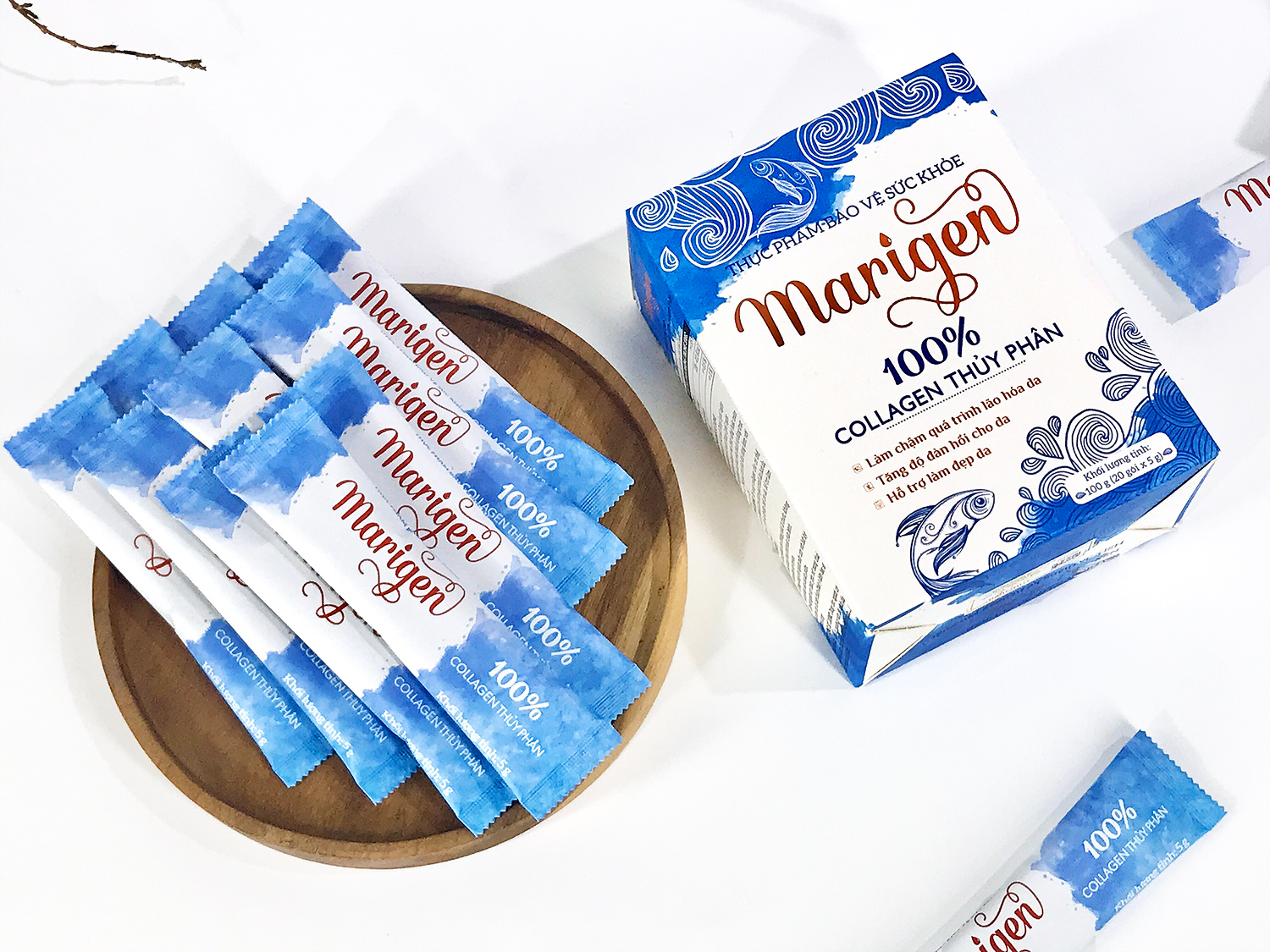 Marigen Collagen là loại collagen được làm 100% từ collagen cá ngọt. Với tác dụng vô cùng tốt cho sức khỏe như dưỡng ẩm da, mịn da, tăng độ đàn hồi cho da, giữ được nét xuân xanh của các chị em sử dụng. Ngoài ra, dòng sản phẩm Marigen Collagen còn cung cấp liệu trình 20 ngày cho chúng ta, với liều lượng tối thiểu 5gr/ngày.