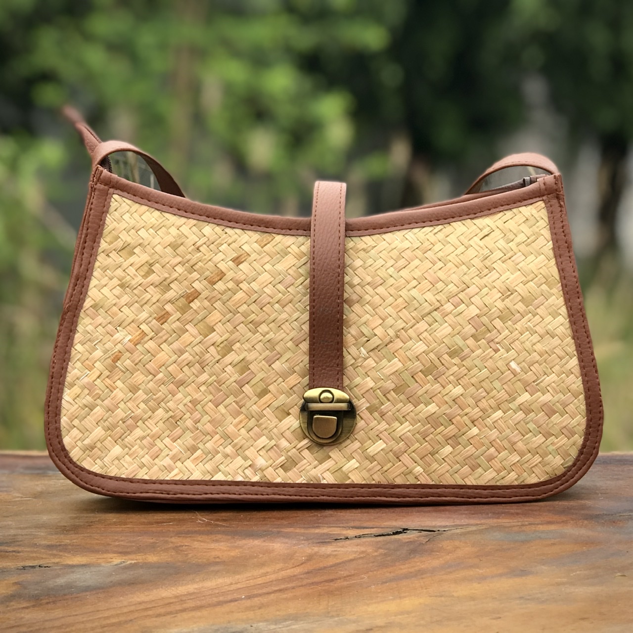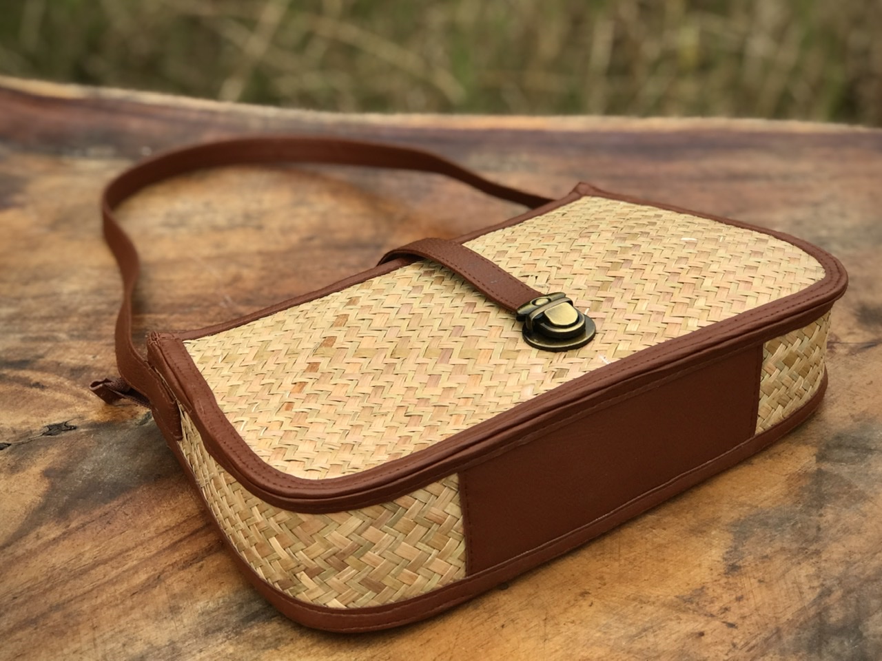 Giỏ đeo quai ngang chữ nhật là sản phẩm được làm từ cỏ bàng thiên nhiên, đây là một phụ kiện tuyệt vời cho chị em mình khi muốn mang đi chơi, đi dạo, đi chợ xuân,... Túi có màu sắc nâu nhạt đặc trưng của cỏ bàng, đường viền vải màu nâu đậm tạo nên sự hài hòa của túi, đây là sản phẩm có thể nói rất phù hợp cho chị em phụ nữ trung niên