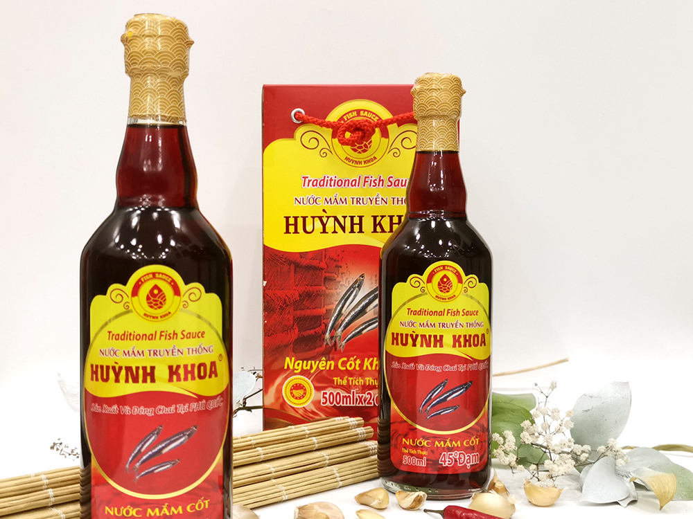 Nước Mắm Cốt Nhĩ Truyền Thống CDĐL Phú Quốc Huỳnh Khoa 45 Độ Đạm (Nguyên Chất) - 500 ml | Hộp 2 chai