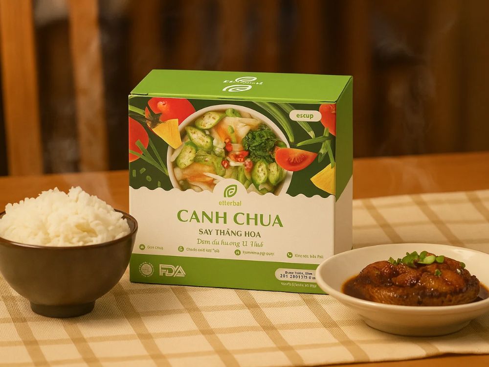 eSoup Canh chua là giải pháp canh ăn liền đột phá sử dụng công nghệ sấy thăng hoa hiện đại để giữ trọn vẹn hương vị chua thanh thanh đạm và dưỡng chất tự nhiên của nguyên liệu tươi