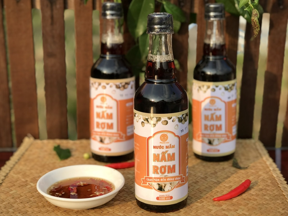 Nước mắm nấm rơm vốn được phát triển theo mong muốn khai thác hết tiềm năng từ món ăn quen thuộc của người Việt. Nhận thấy giá trị dinh dưỡng của cây nấm rơm mang lại cho người sử dụng rất cao nhưng lại chưa được khai thác tốt. Do đó, nước mắm nấm rơm đã ra đời, nước mắm được làm từ nước cốt nấm rơm, vốn được tuyển chọn kỹ nên hương vị của nước mắm rất thanh, không có vị hắc, màu sắc trong trẻo, không bị đục. Đây cũng chính là một trong các sản phẩm mà người ăn chạy hay ăn mặn đều có thể sử dụng được, rất tiện lợi.