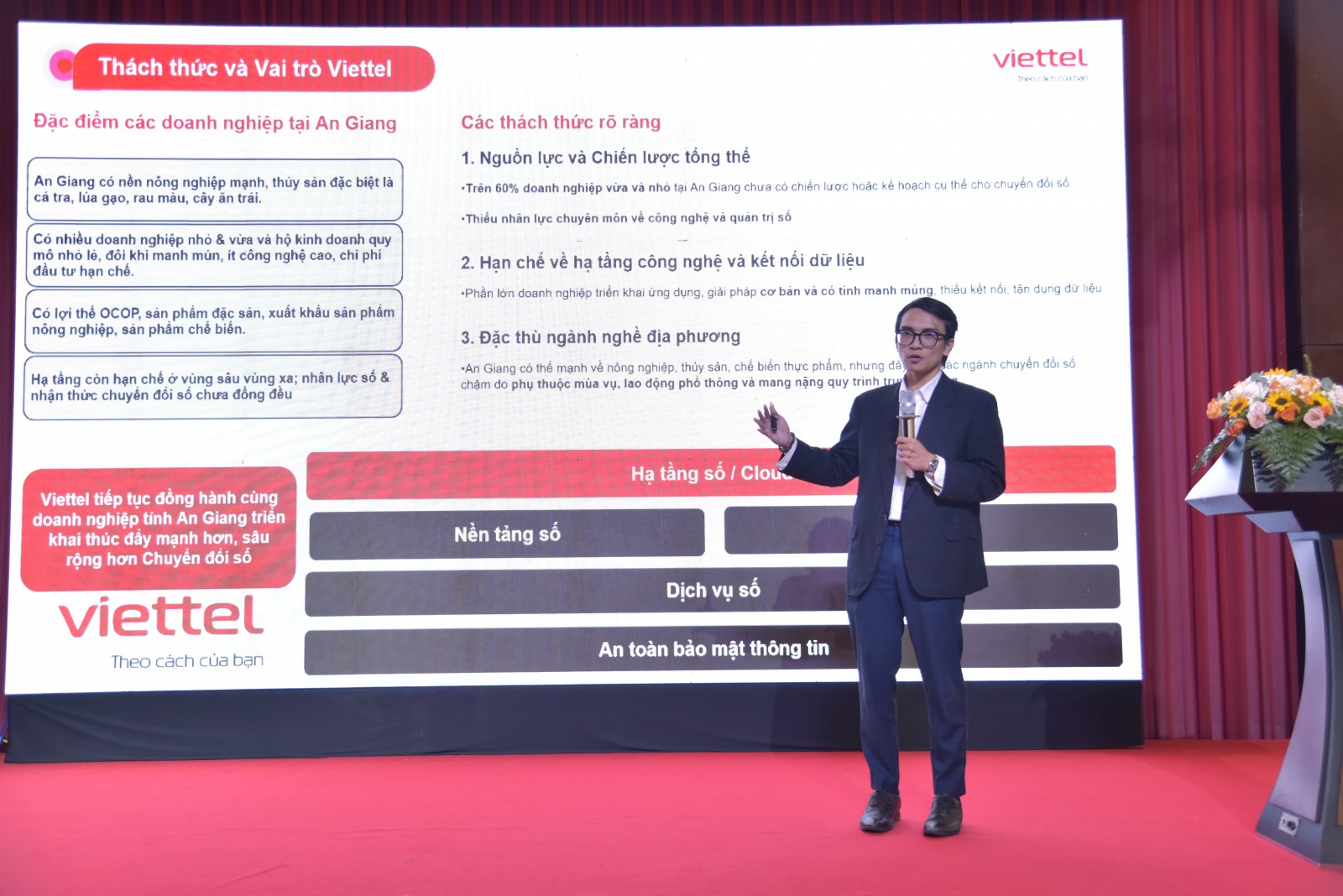 Phát biểu tại hội thảo, Trung tá Đỗ Thanh Tuấn - Giám đốc Viettel An Giang nhấn mạnh: “Chuyển đổi số hôm nay không chỉ là một xu hướng mà là nền tảng sống còn cho sự phát triển của mọi doanh nghiệp. Nếu như 10 năm trước, lợi thế cạnh tranh đến từ quy mô hay vốn đầu tư thì nay lợi thế ấy đến từ dữ liệu, công nghệ và tốc độ ra quyết định”.