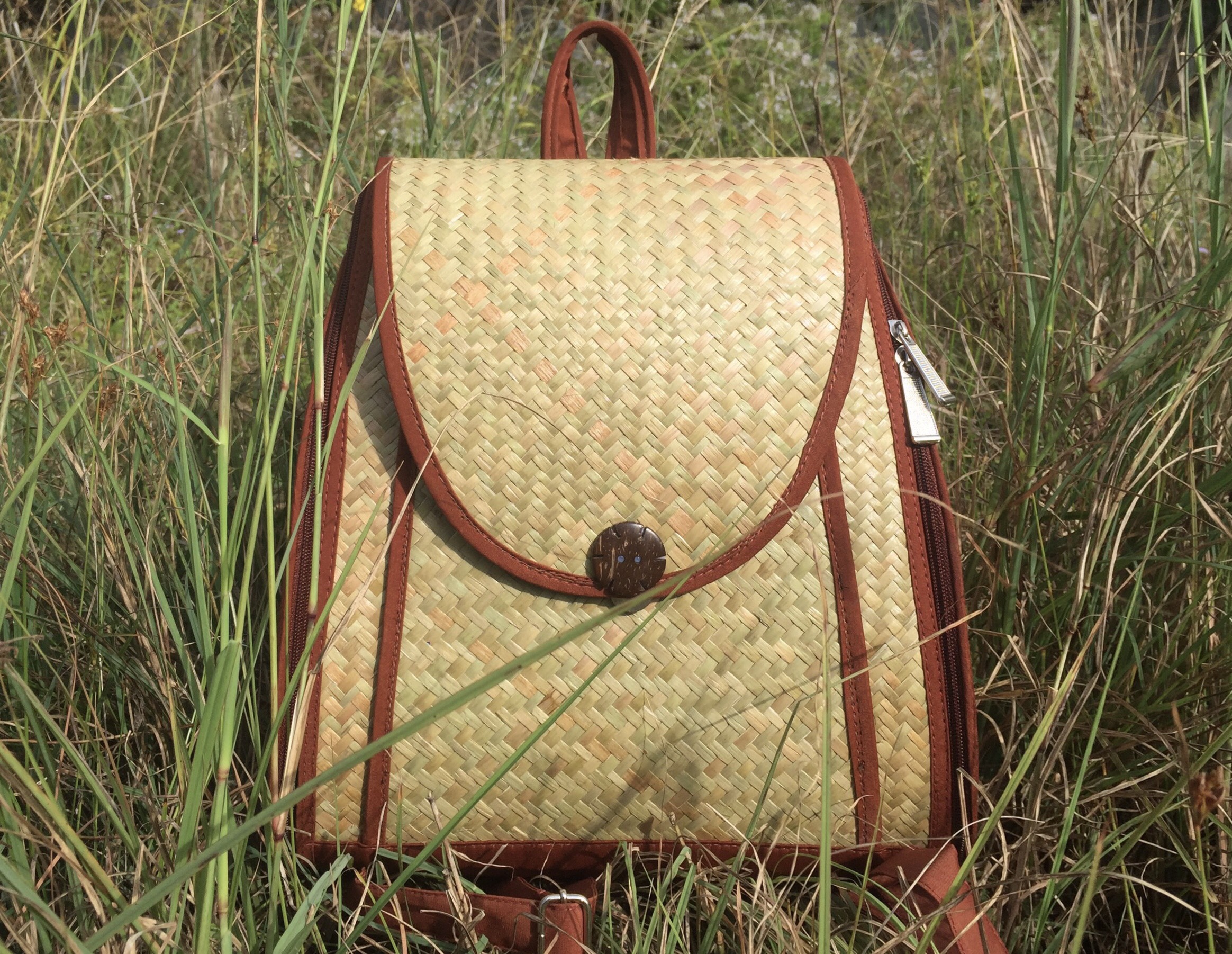 Balo Bàng là một trong các sản phẩm nằm trong dòng balo làm từ cây cỏ bàng, cói và lục bình ngoài tự nhiên. Được làm thủ công bởi các nghệ nhân địa phương, sản phẩm được đan từng cây cỏ khô xen kẻ vào nhau, tạo ra sự chắc chắn.