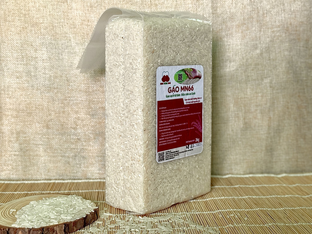 Gạo MN66 với thành phần 100% Gạo hữu cơ, được canh tác tự nhiên từ giống lúa OM18, chăm sóc bằng phân hữu cơ đạm cá sạch, giữ nguyên lớp cám gạo dinh dưỡng.