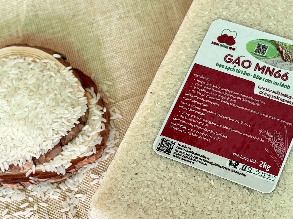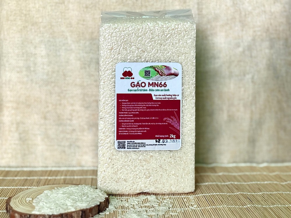Gạo MN66 với thành phần 100 Gạo hữu cơ được canh tác tự nhiên từ giống lúa OM18 chăm sóc bằng phân hữu cơ đạm cá sạch giữ nguyên lớp cám gạo dinh dưỡng