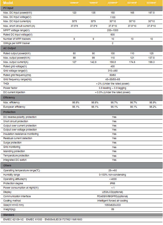 Bộ Biến Tần On-grid Austa 80K3P (3 pha, 80kWp)