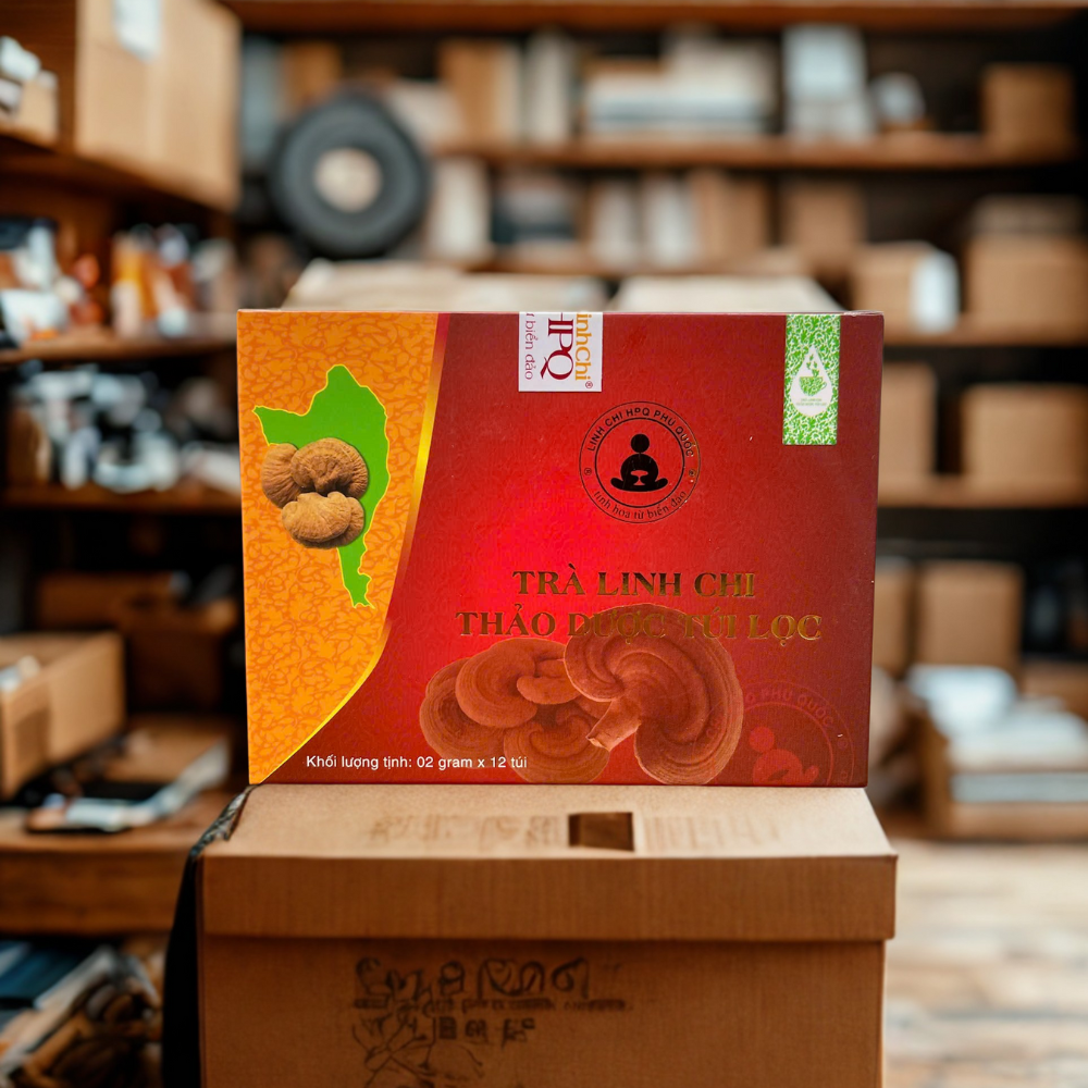 Trà linh chi thảo dược túi lọc được chế biến từ nấm linh chi đỏ nguyên phấn bào tử – một dược liệu quý trong y học cổ truyền, kết hợp cùng các vị thảo mộc thiên nhiên như đinh lăng, sâm rừng PQ và nhiều loại thảo dược khác. Sự hòa quyện này mang đến hương vị thanh mát, dễ uống, đồng thời nâng cao giá trị chăm sóc sức khỏe cho người sử dụng.