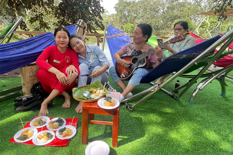 Họ đến đây không chỉ khám phá cảnh sắc thiên nhiên xanh mát của miền sông nước, ăn trái cây sạch và đặc sản các món ăn ngon đậm chất đồng quê, được chèo xuồng mà còn được thả hồn vào không gian văn hóa đặc sắc của nghệ thuật Đờn Ca Tài Tử.