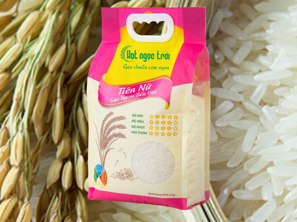 Gạo Hạt Ngọc Trời Tiên Nữ 5 Kg - Gạo Ngon Tiến Vua được công nhận OCOP Quốc gia 5 sao và Thương hiệu Quốc gia Việt Nam, khẳng định vị thế gạo thơm đặc sản Việt Nam trên thị trường quốc tế.