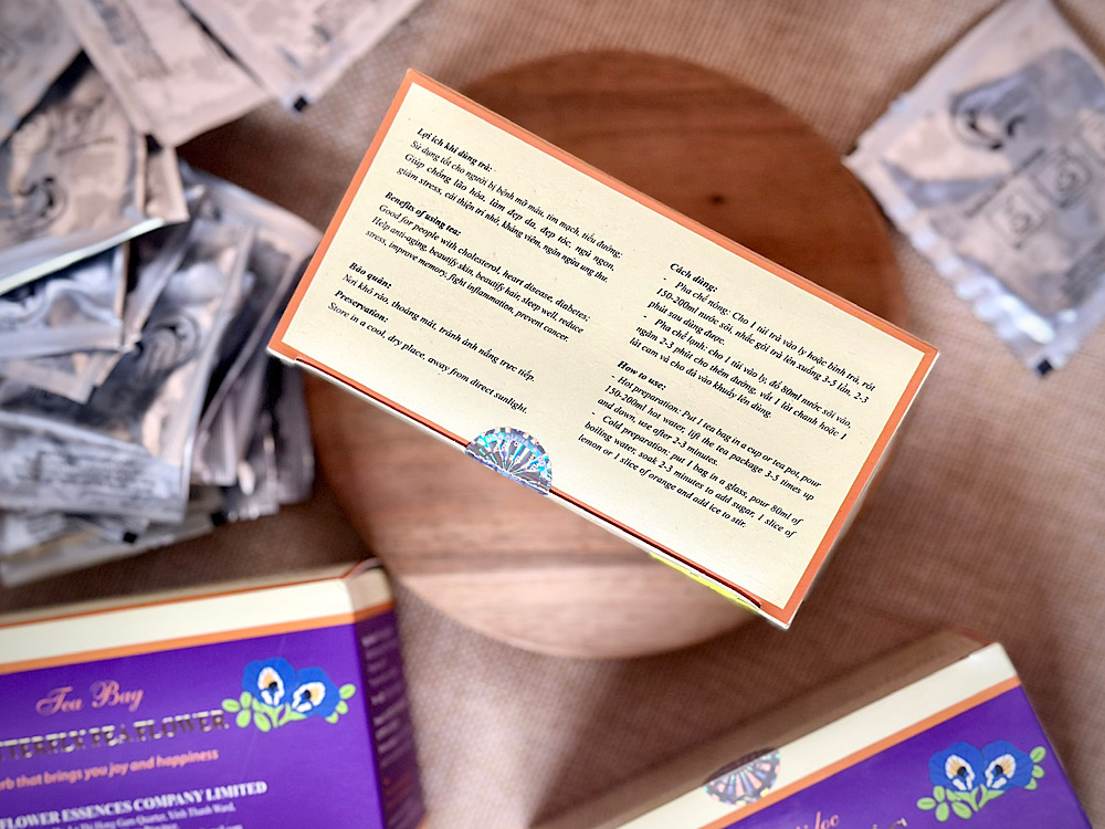 - Tên sản phẩm: Trà túi lọc hoa đậu biếc