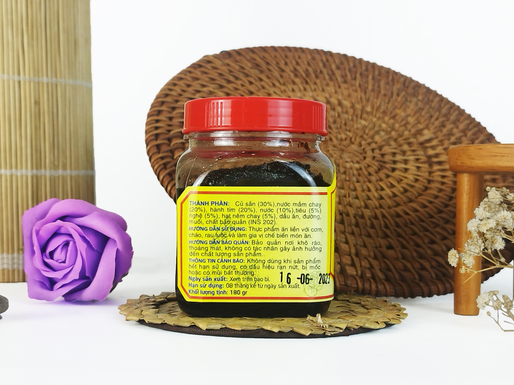- Thành phần: Củ sắn, nước mắm chay, hành tím, tiêu, nghệ, dầu ăn, đường, muối, nước, chất bảo quản.