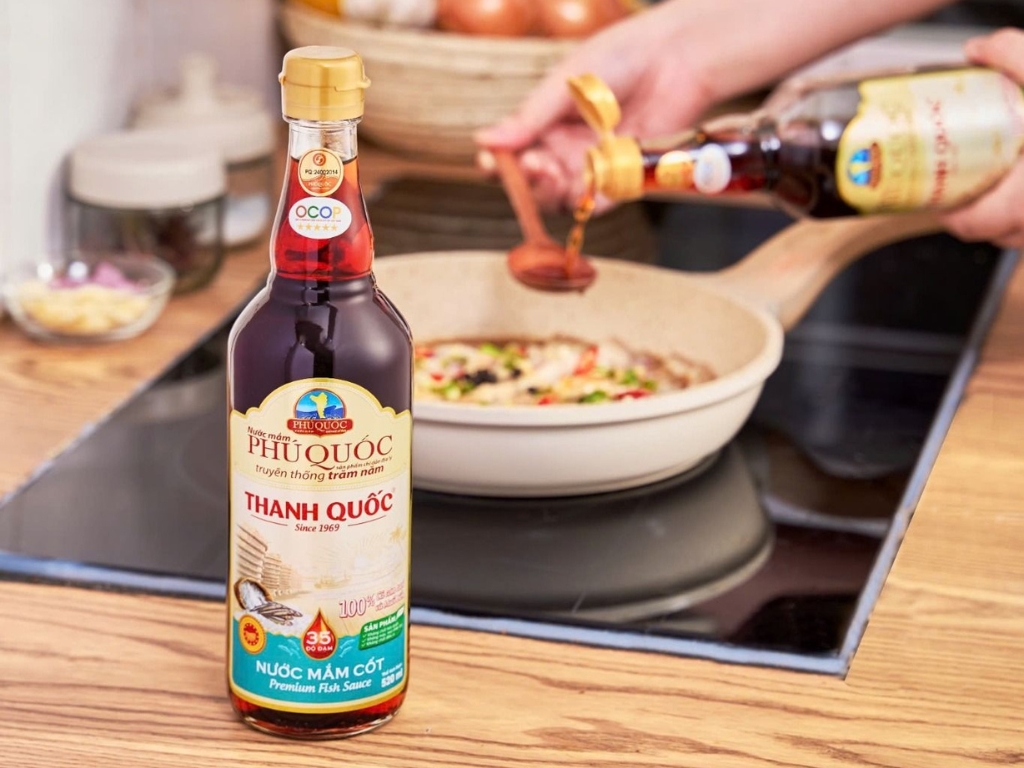Nước mắm chỉ dẫn địa lý Phú Quốc Thanh Quốc 43N là sản phẩm cao cấp được Liên minh Châu Âu bảo hộ chỉ dẫn địa lý khẳng định giá trị đặc sản truyền thống Sản phẩm được sản xuất theo tiêu chuẩn quốc tế HACCP ISO 220002018 và HALAL đảm bảo an toàn c