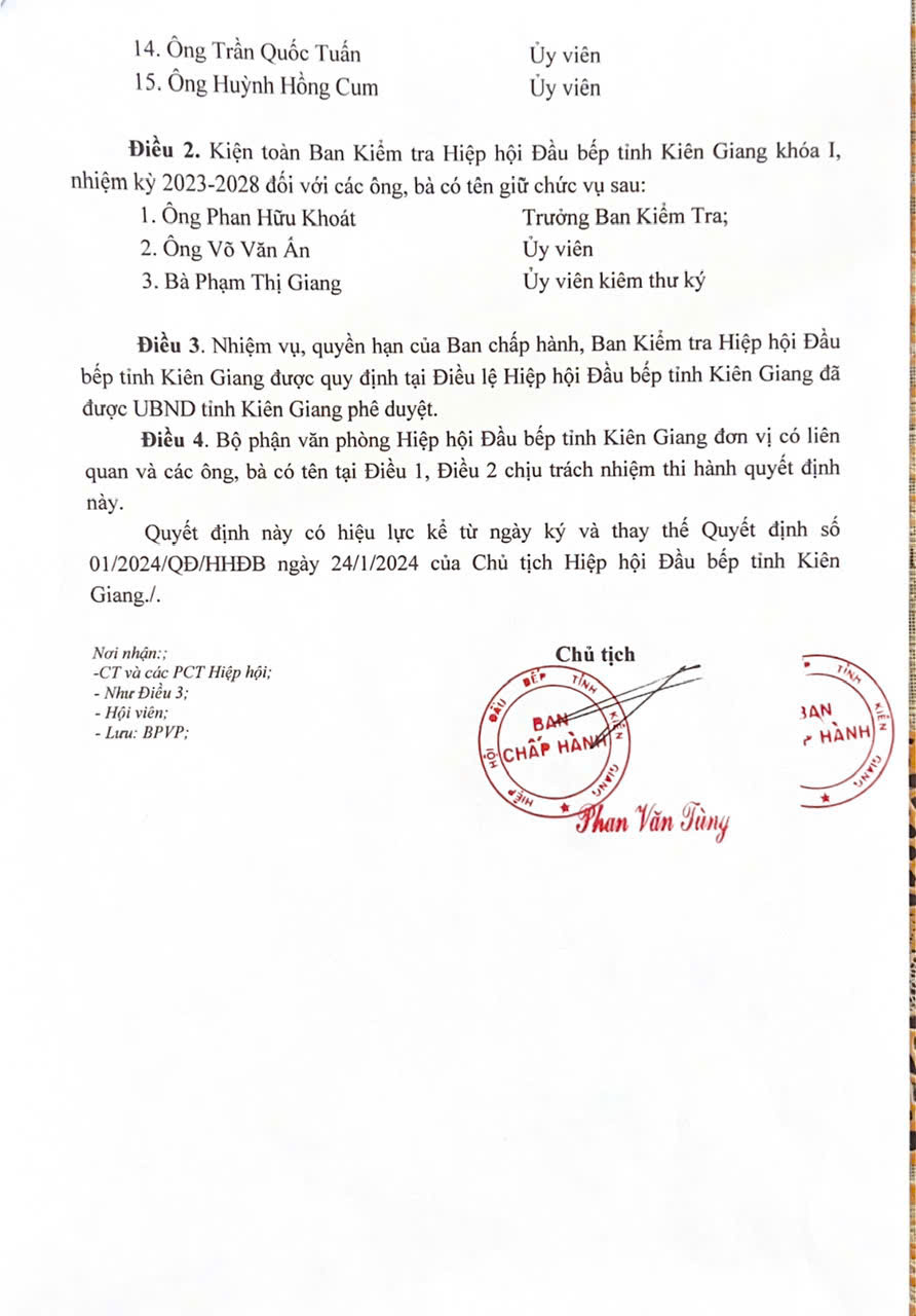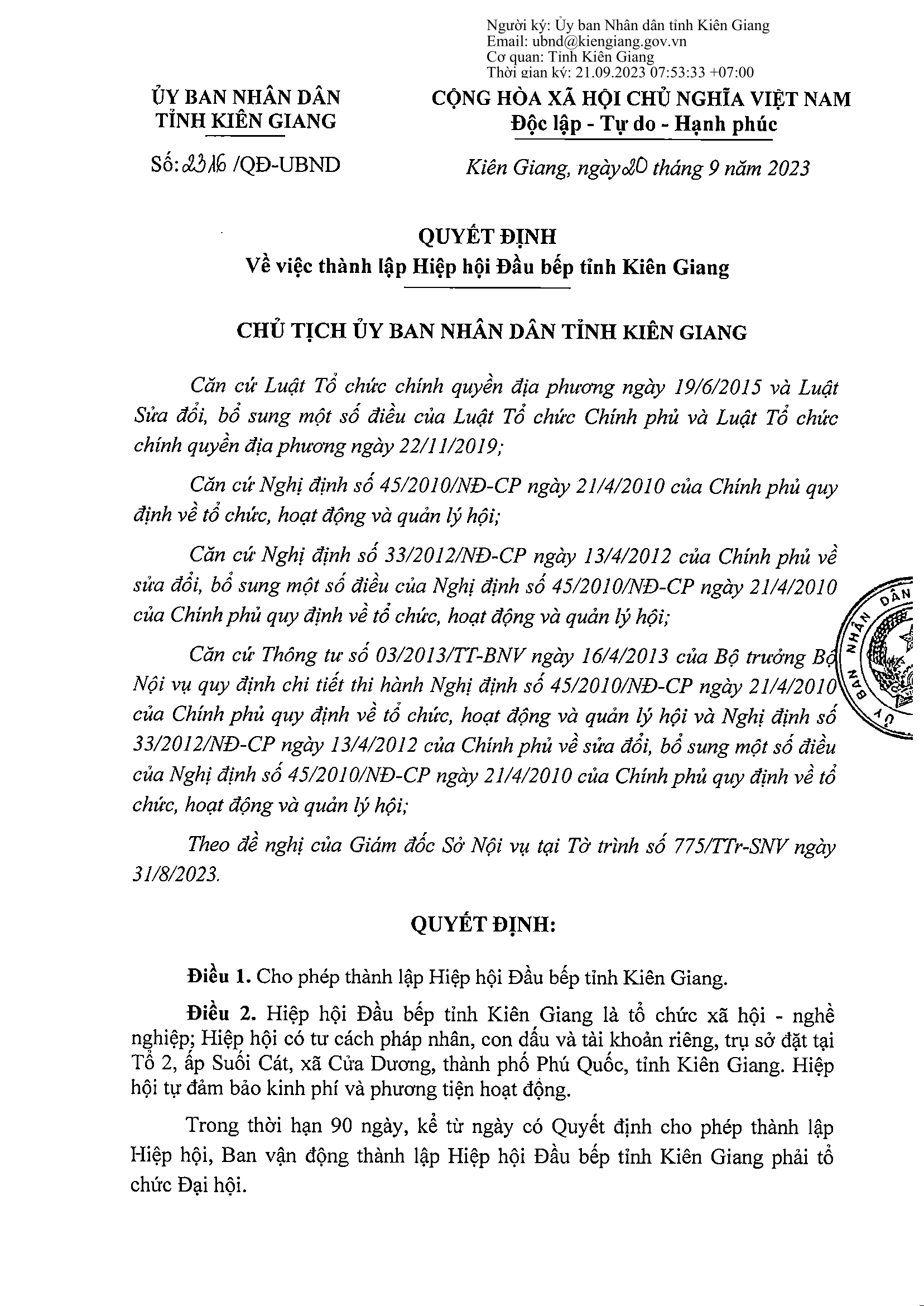 Hiệp hội Đầu bếp tỉnh Kiên Giang là một tổ chức xã hội được thành lập nhằm kết nối và hỗ trợ các đầu bếp trong tỉnh. Hiệp hội được Ủy ban nhân dân tỉnh Kiên Giang cho phép thành lập vào ngày 20/09/2023, với trụ sở đặt tại thành phố Phú Quốc.